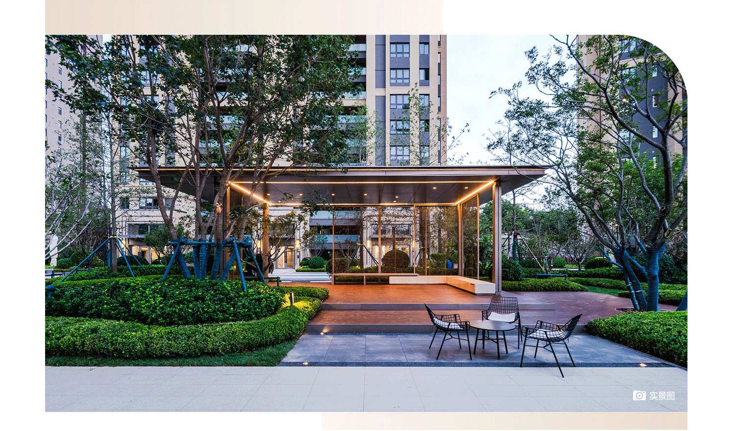 入园即可看见约4万㎡中央实景园林,由以“公园”为概念结合“星际迷航”故事线,营造五幕“森”活剧场,漫步经过园林空间,现代感的楼栋外立面与典雅大气的单元大门映入眼帘。充满欢乐的儿童乐园,涵盖滑梯、小型跑道、动物科普等玩乐设备,每栋楼的架空层空间,均设有娱乐、健身器材,旨在打造多功能、全龄化主题空间。