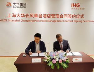 2020年4月27日晚6:30,大华集团再度携手洲际酒店管理集团,于大华锦绣假日酒店举行上海大华长风華邑酒店签约仪式。集团总裁朱录松先生及洲际酒店管理集团大中华区CEOJolyon Bulle率领团队共同见证。